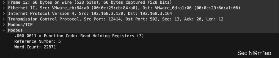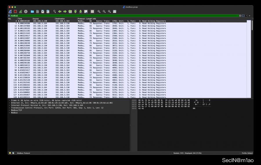 plt.imshow(qrcode)用 Wireshark 解包,发现工业上常用的 modbus 协议: