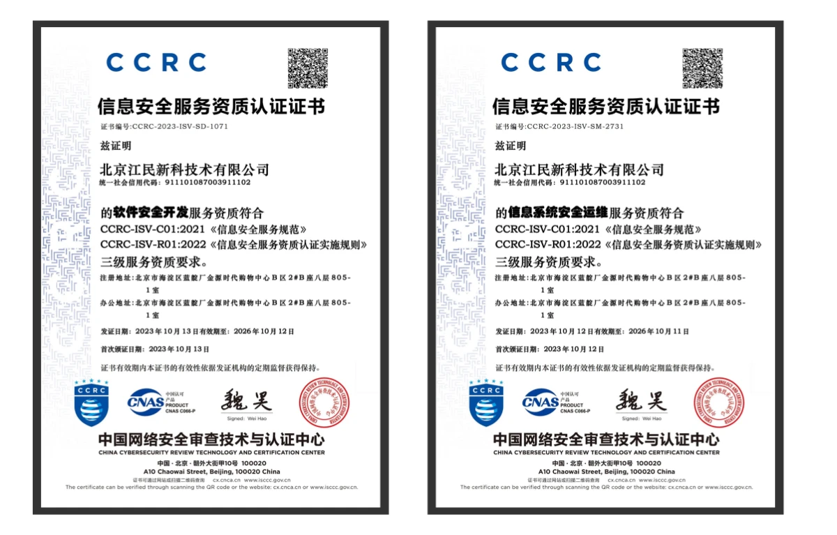 近日,经过严格的审核与认证评价,江民科技通过了中国网络安全审查技术与认证中心(简称CCRC)的信息安全服务资质认证,获得信息系统安全运维、软件安全开发两项三级服务资质。