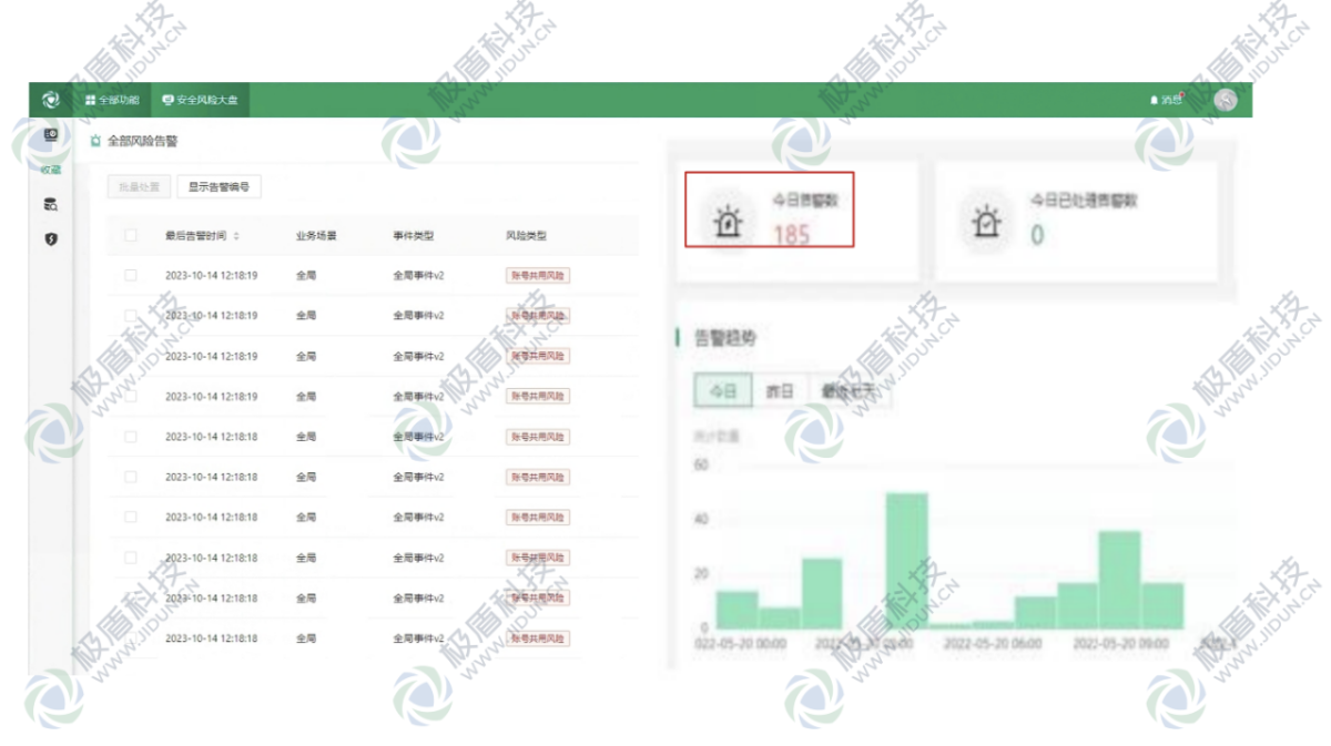 通过跨设备“任意安全事件关联实时分析”和“告警归并+威胁情报过滤+告警白名单”,大大抑制了告警泛滥,日均安全告警数量从数万降至100条左右。
