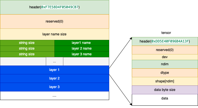 TVM生成模型参数文件格式就变成如下:
