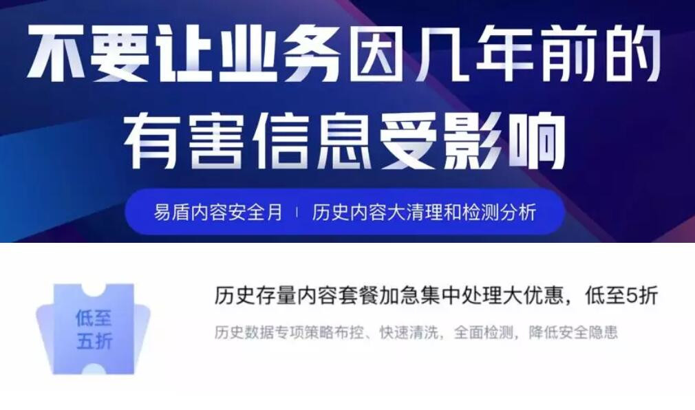 在最后,王博还提及,易盾于近期推出了历史存量内容套餐加急处理服务,能够根据历史数据专项策略布控、快速清洗、灵活定制不良内容模型,帮助客户全面检测,及时降低内容安全隐患。