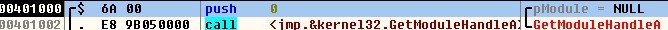 我这里写一个小程序里面就调用一个函数GetModuleHandle,咱们要做的就是跟进这个函数去看看