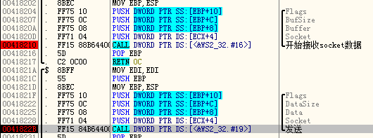 自己单步了很久,锁定了一些关于socket的关键部分代码