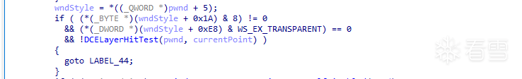 翻阅伪代码查找到了一处疑似有关代码片段,根据其函数命名WindowHitTest感觉很有可能有关