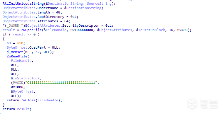 既然验证在内核上面,会访问“C:\1.txt”。直接inline hook NtReadFile