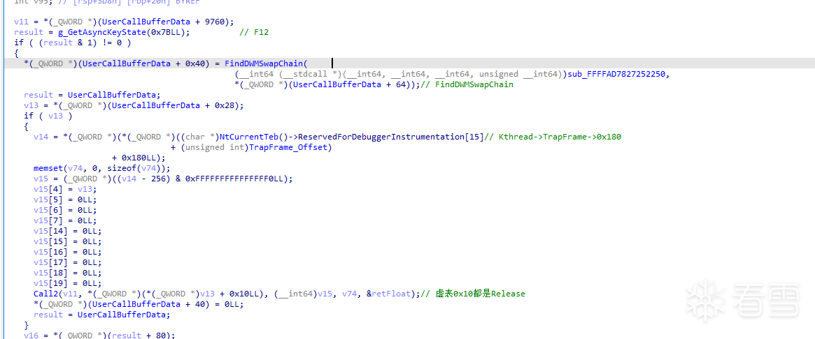这部分被VM了 大概猜测就是游戏启动初始化hook 游戏的一些hook