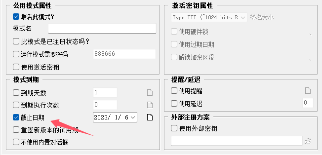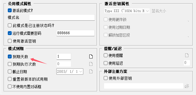 要启用此功能,请确保未选中“此模式是已经注册状态吗?”选项,然后勾选“使用提醒”和“使用延迟”。