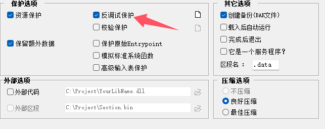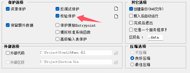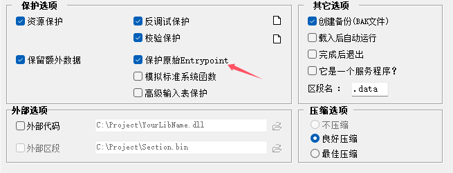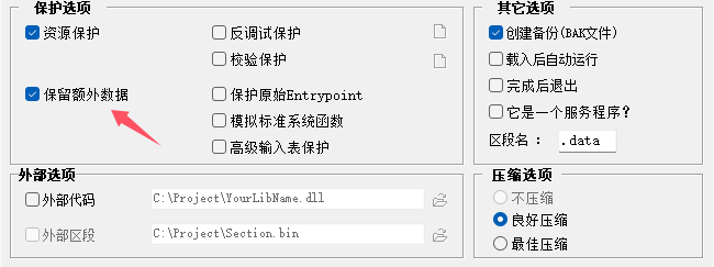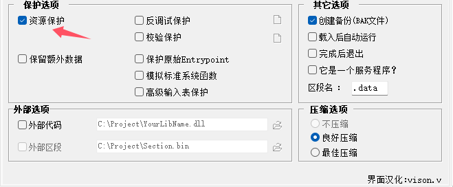 勾选此选项,加壳程序会加密资源节内容,但在执行流转移至原始入口点(OEP)前会自动解密。如遇脱壳后资源显示问题,新建节区转移资源即可解决。