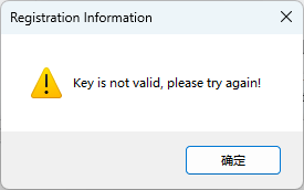 输入任意名称和注册码,如果输入有误,将会弹出一个错误窗口: