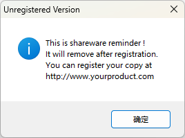 如果使用的是未注册版,并勾选项了 "使用提醒”,程序启动时会弹出如下一个未注册的对话框: