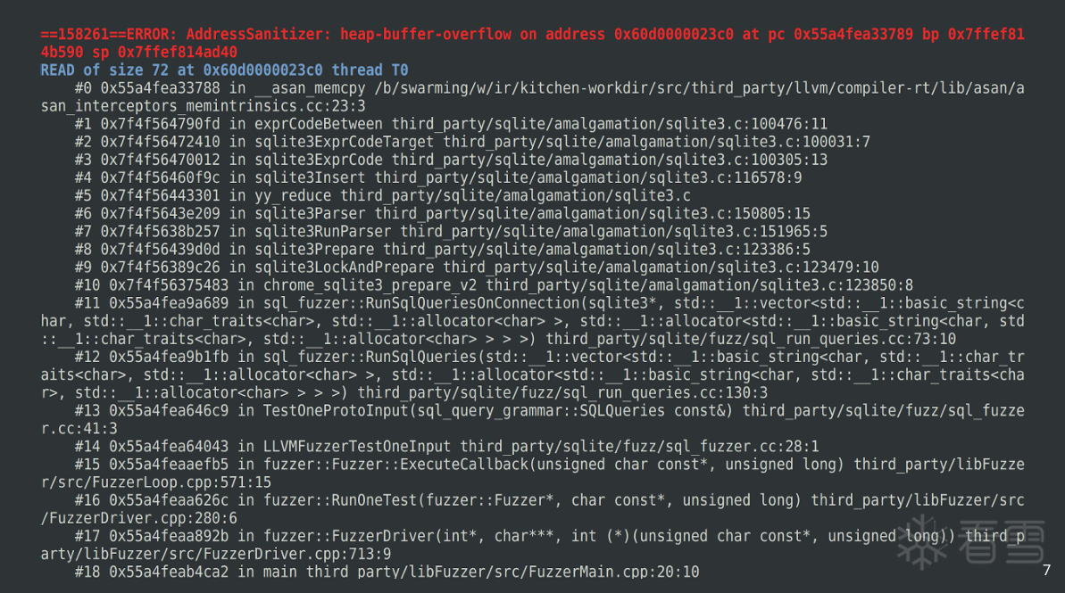 fuzz的初心是挖掘漏洞,结构化感知的方案可以挖出更多漏洞。对于下面的 sqlite 堆溢出,非结构化感知的oss-fuzz经过了多年的持续fuzz,输入了数百亿的测试用例,仍然无法发现。然而结构化fuzz很快就找到了。