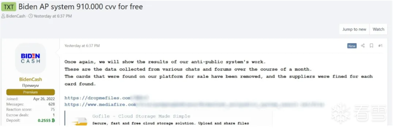 BidenCash再爆大规模信用卡泄露,近百万数据被公开
