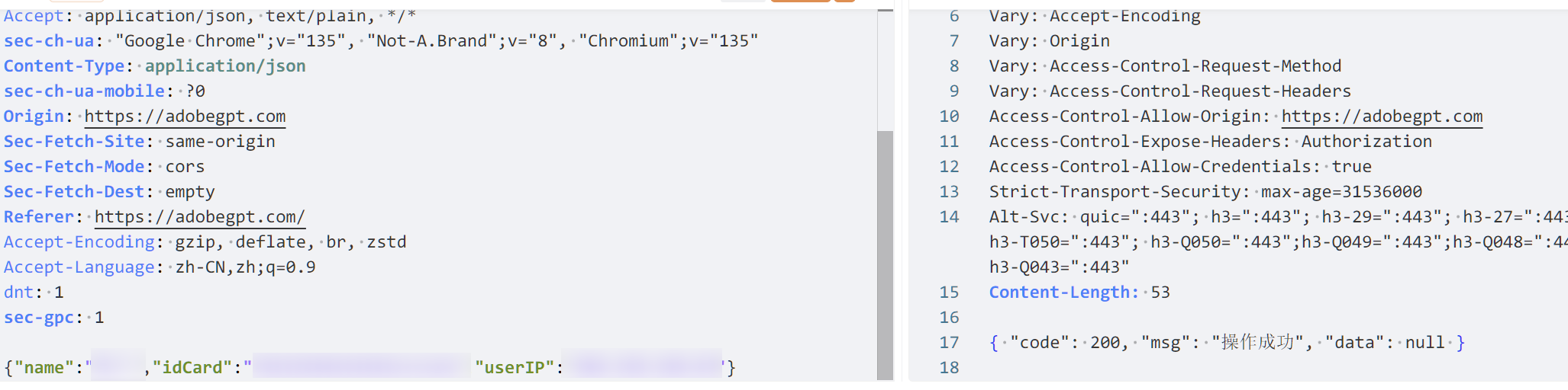 这其中包括了我的IP和相关请求,最离谱的是,「它居然能看到最近提交信息的受害者信息」,比如我随便点开一条: