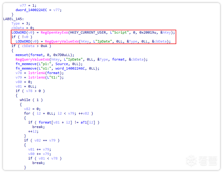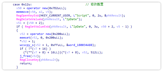将内存中的PE进行dump分析发现,它是一个Win0s后门木马。该木马通过将配置项写入注册表的方式进一步进行后门通信。
