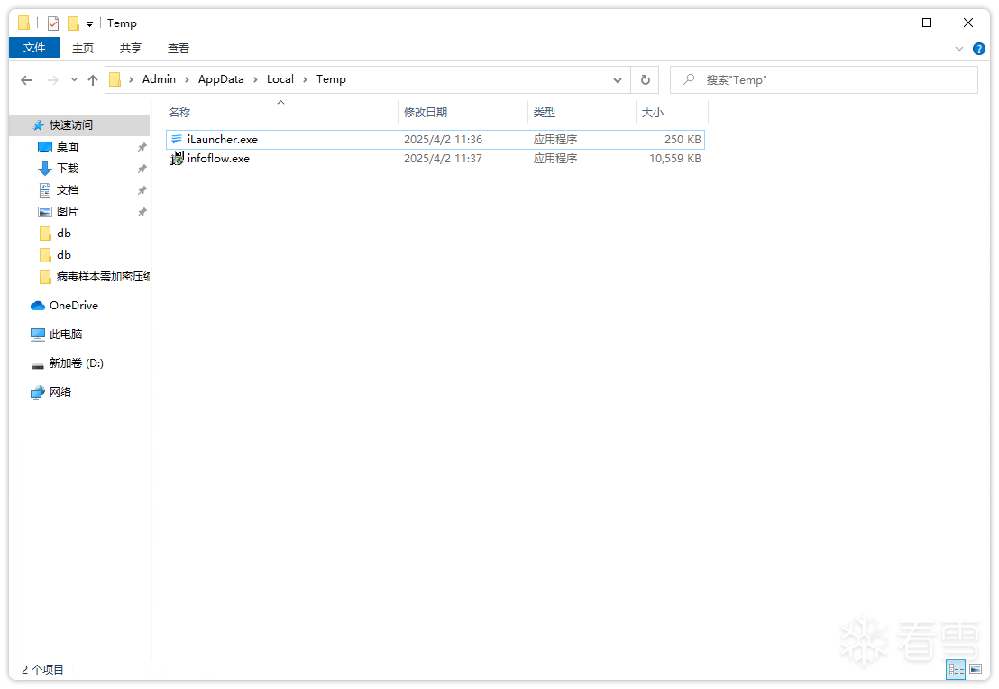 对infoflow.exe进行解包发现,其打包了白加黑文件。