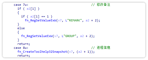 0x07 修改备注、0x08 进程信息、0x0B 日志清理。