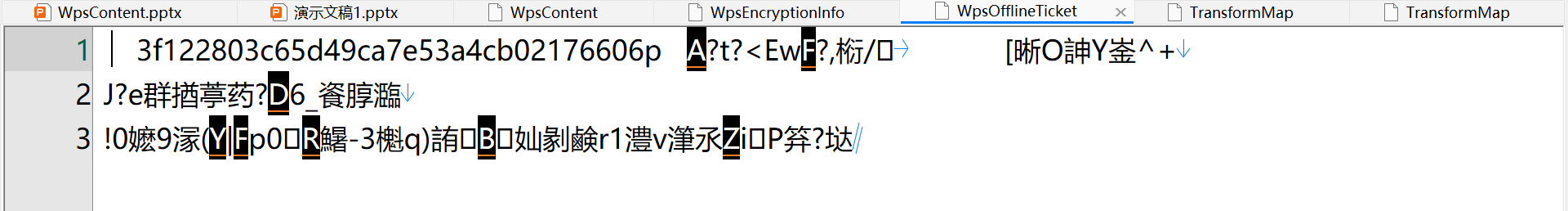 其中,两份文件唯一不同的WpsContent文件,猜测这是ppt文件本体,其它文件可能包括秘钥信息。