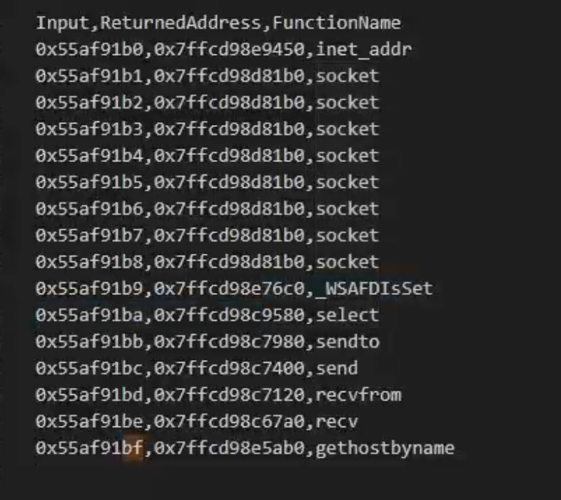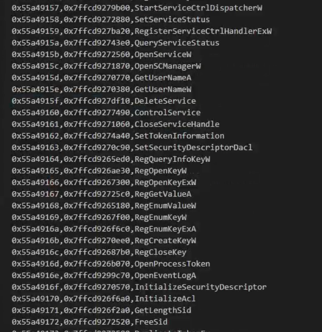 木马调用系统函数时会通过异或加密间接调用,写程序解密后获得函数映射表,可见样本可能调用网络连接、注册表操作等敏感: