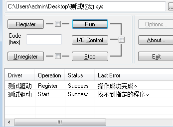 可以把驱动名称改为英文试一试,你的加载程序可能用了OpenServiceA,lpServiceName是LPCSTR类型,在win7下可能有兼容问题,如果还不行就直接 sc start 命令试一下