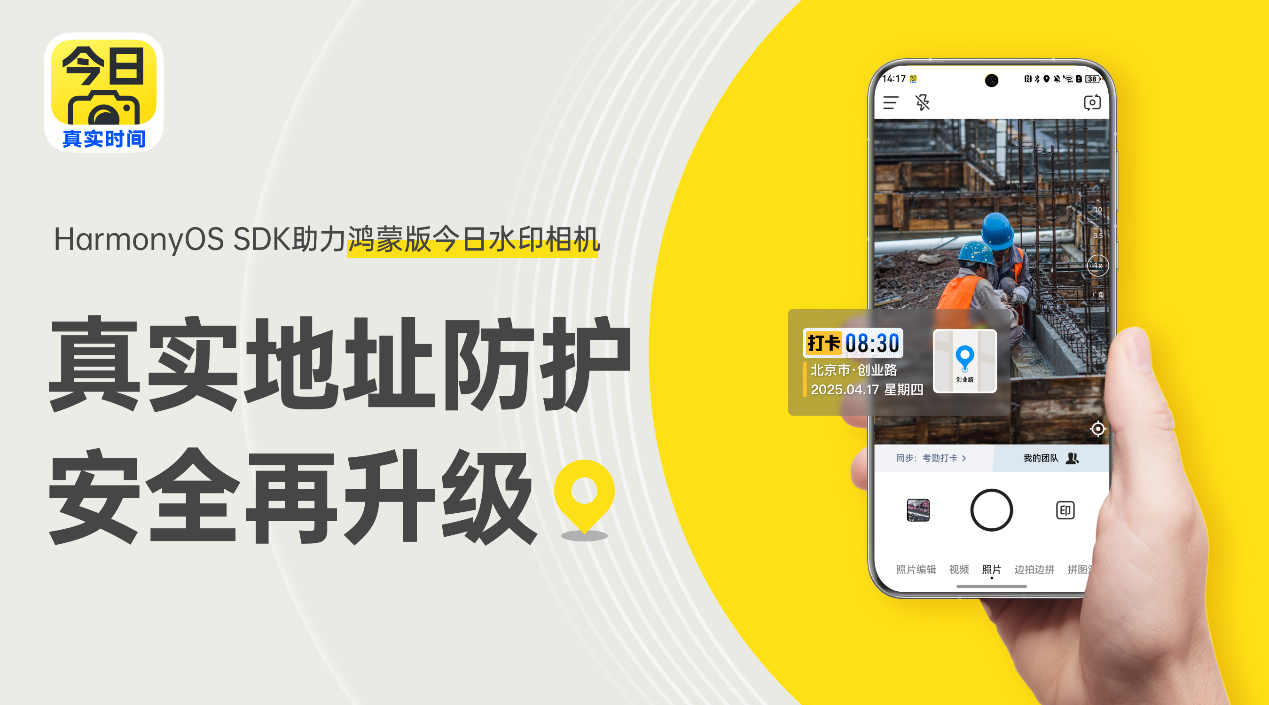 传统的地理位置获取依赖应用层加密校验,但在系统被越狱攻破的场景下,GPS定位数据仍存在被二次篡改的风险。鸿蒙版今日水印相机基于HarmonyOS安全地理位置方案,从地理位置信息的生成、获取与校验入手,实现了应用获取地理位置的不可篡改和加密存储,保障工作场景(如工程验收、执法取证等)中拍摄位置的权威性。
