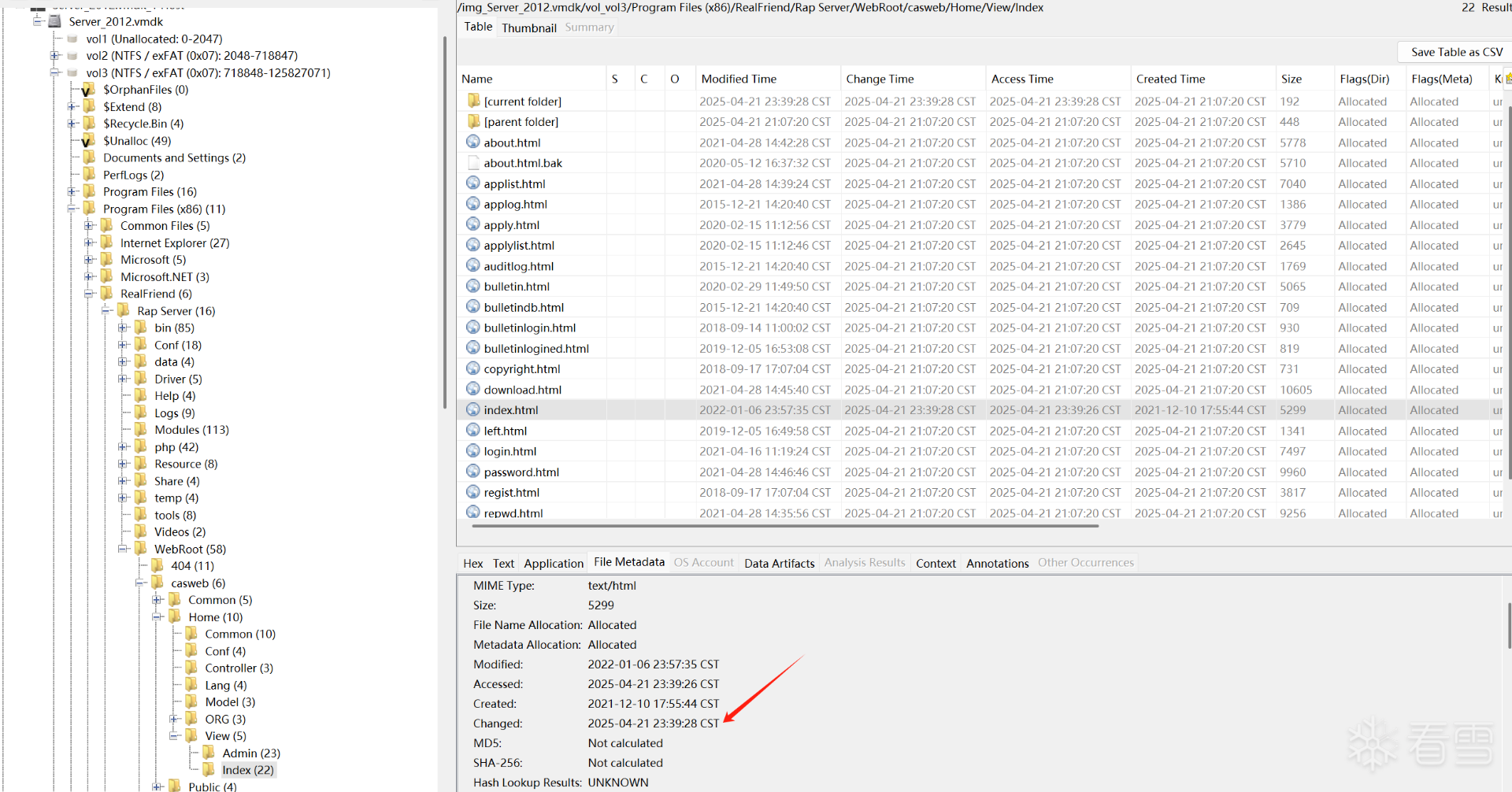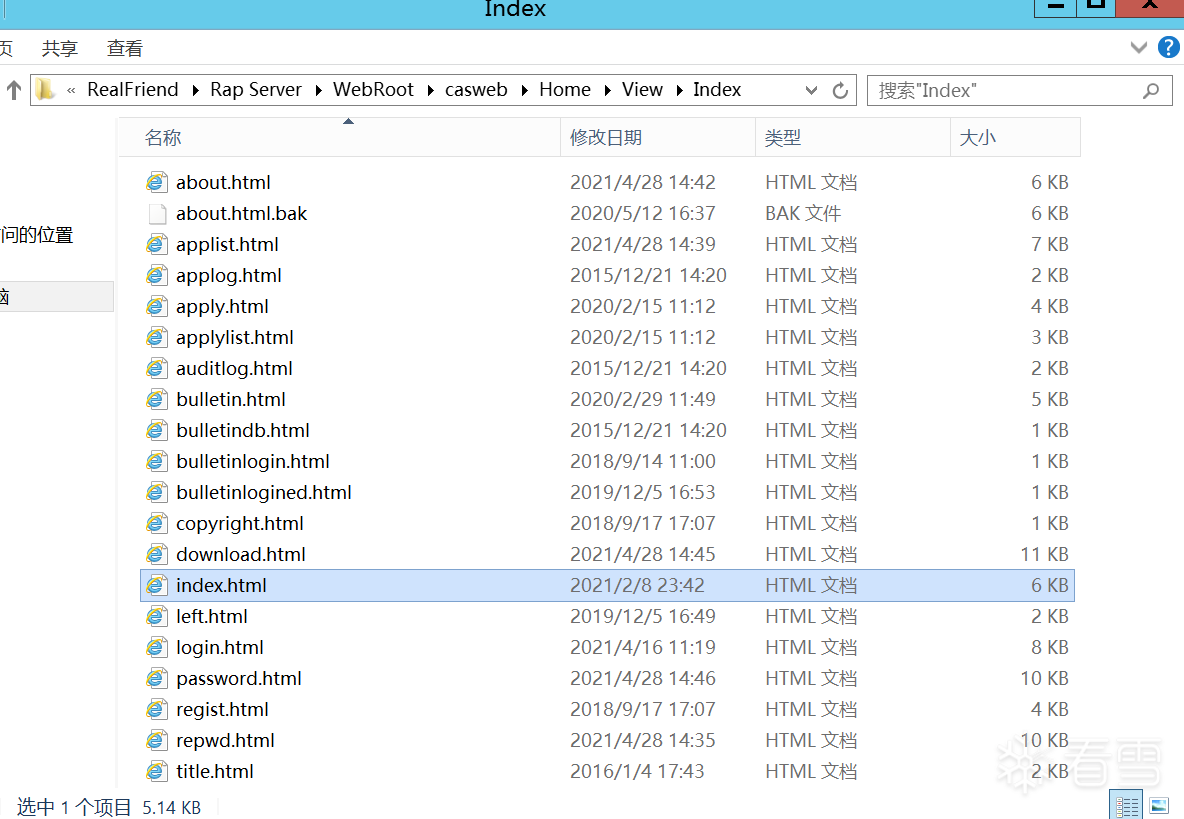 现场的运维说软件的某个跳转地址被恶意的修改了,但是却不知道啥时候被修改的,请你找到文件(C:\Program Files (x86)\RealFriend\Rap Server\WebRoot\casweb\Home\View\Index\index.html ) 最后被动手脚的时间
