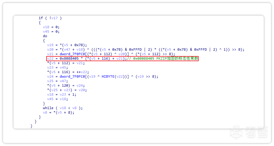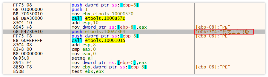 随后,样本跳转至虚拟化代码段执行。该段采用代码虚拟化技术(VMProtect指令混淆),通过PKZIP算法对资源节中的恶意载荷——易语言编译的Etools.dll1(易之卫定制版)进行解密。