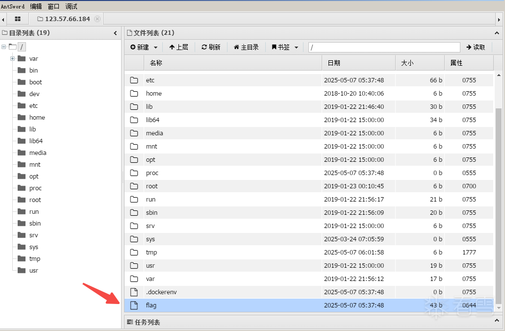 通过蚁剑连接,在根目录获取到flag