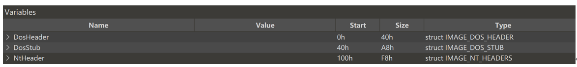 typedef struct _IMAGE_DOS_HEADER {