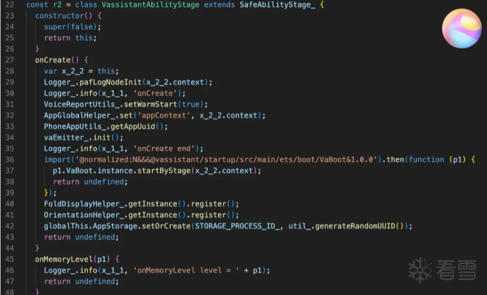 目前 .abcD 反编译器已具备较完善的处理能力,能够为应用的逆向分析提供坚实可靠的支持,且已在大量实际分析场景中得到了充分验证。下图即是DARKNAVY利用自研的应用解密技术和 .abcD 反编译器,对鸿蒙应用市场内最新版本“小艺”(发布日期 2025-04-21)的反编译结果: