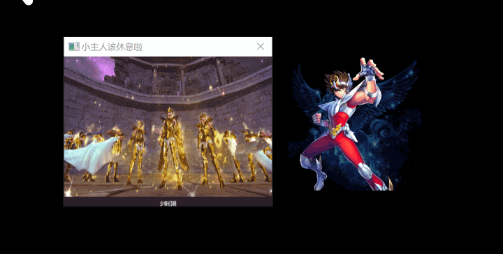 1.暂时命名为宠物助手吧。 每一个小时就会弹框跳舞。提醒你该休息了。