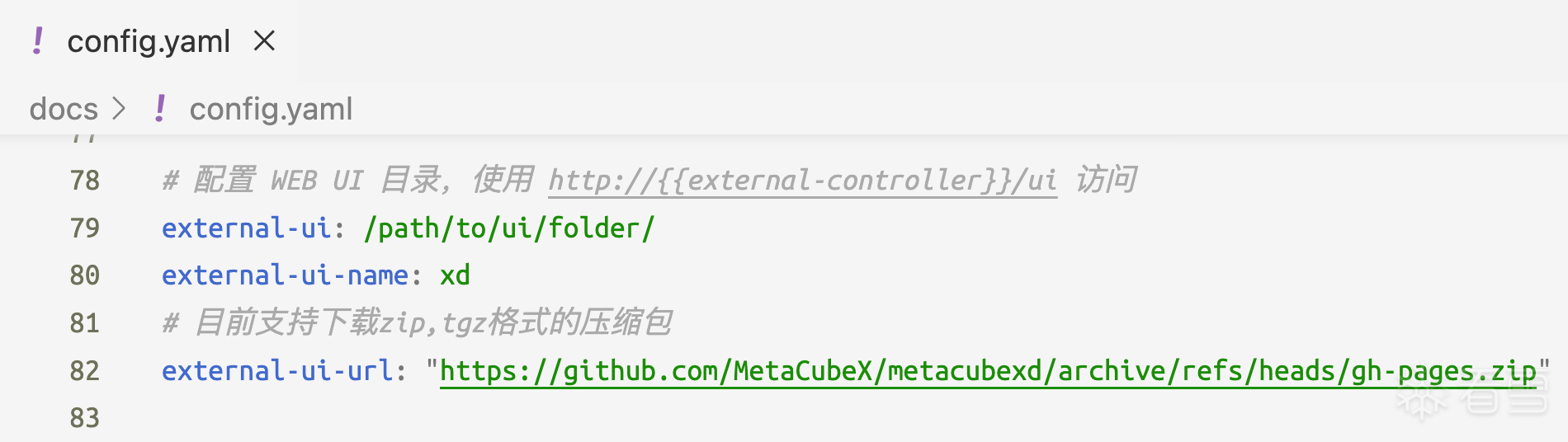 配置文件为YAML格式,并且其中的下载UI功能可被利用