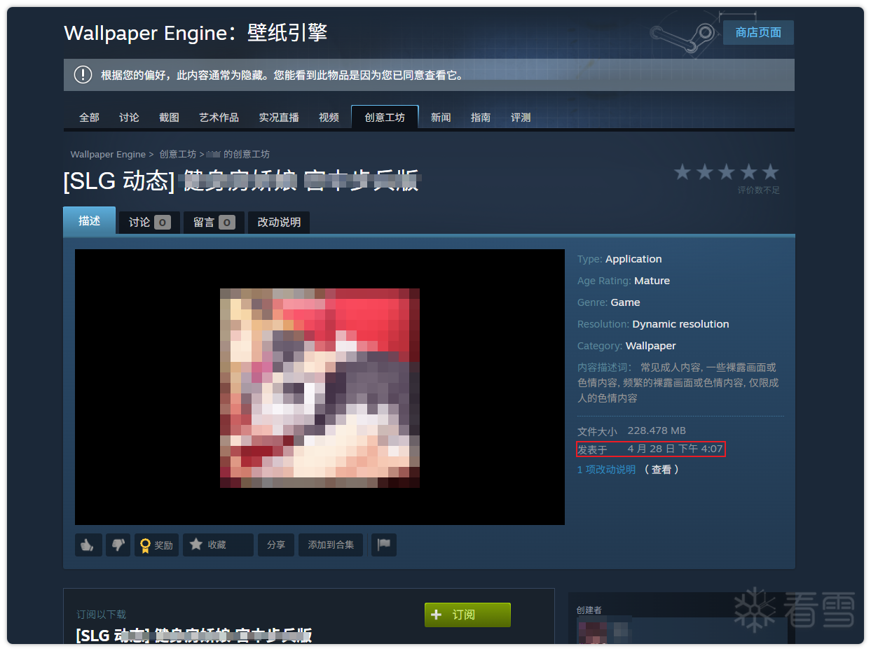 《壁纸引擎》的创意工坊支持上传任意文件,包括非壁纸格式的可执行程序,因此成为黑产投毒的重要渠道之一。不法分子将恶意程序伪装成精美壁纸等内容上传,通过社区传播诱导用户订阅并执行盗号程序。