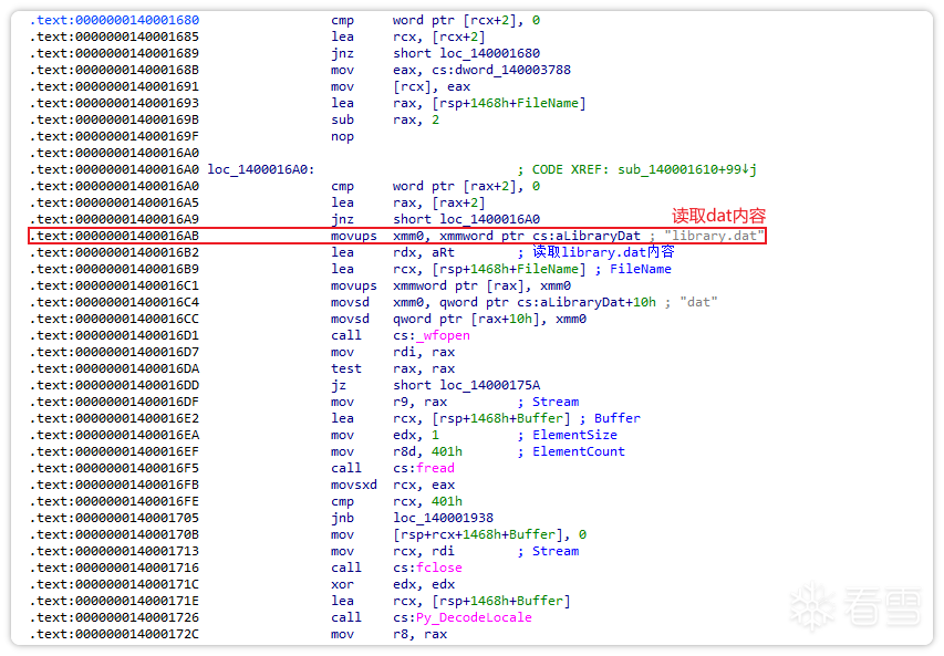library.dat文件是一个txt文件,存储着内含大量pyc文件的压缩包library.zip。这些pyc文件由Python加载器加载执行,病毒主文件藏匿其中。