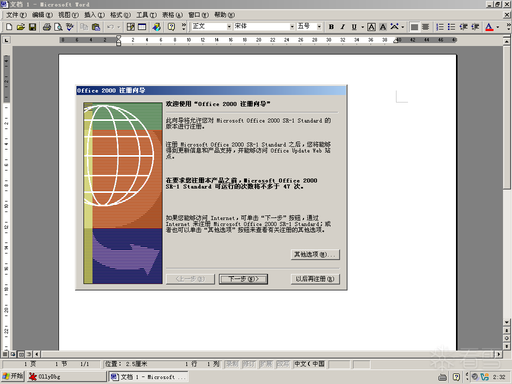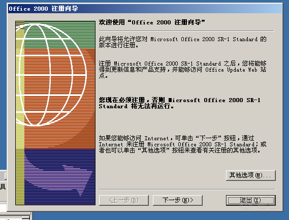 在网上找到了很多个原版 Office 2000的镜像文件,在虚拟机里面安装以后并没有出现注册向导。