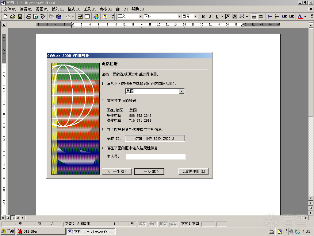 20多年前安装过原版的 Office 2000,安装以后会提示注册,不注册只能使用50次,这么多年过去了,一直想再研究一下是什么原理,能不能找到确认号。