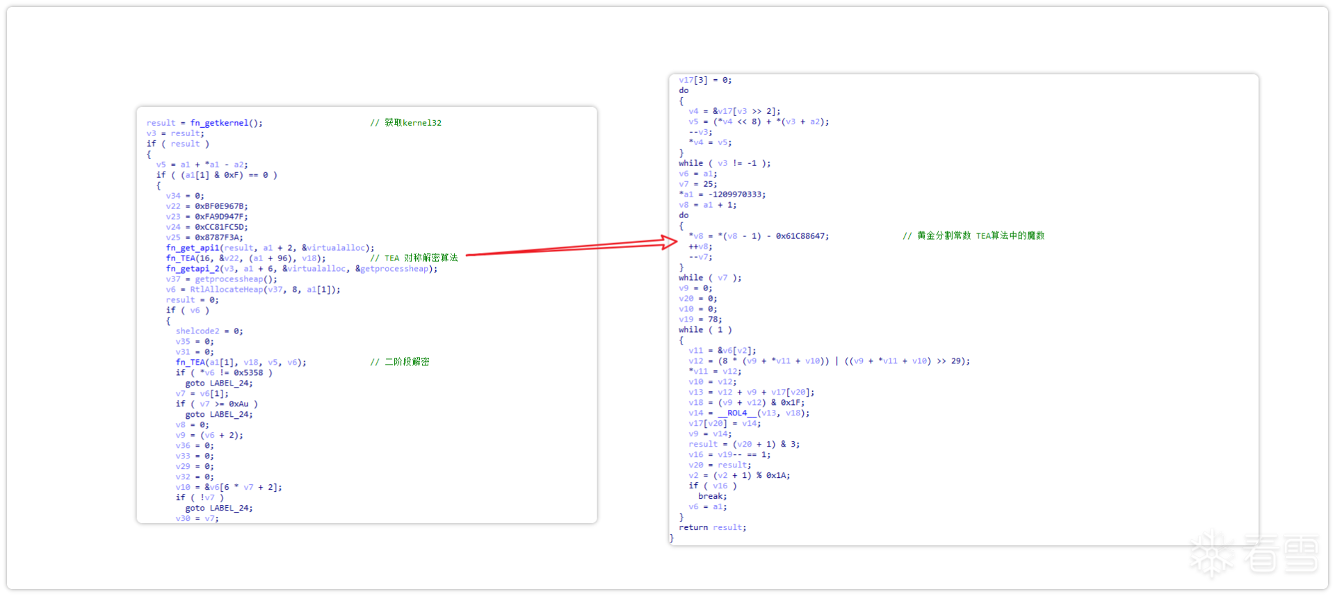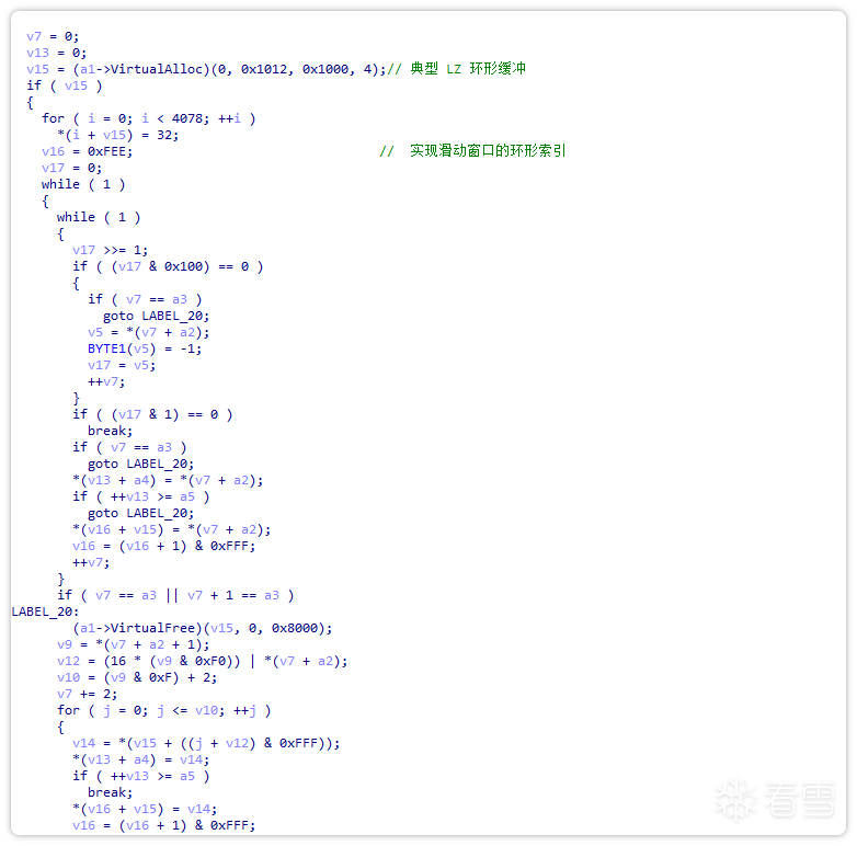 在第二阶段,恶意代码首先使用LZSS解压算法对自身进行解压,然后通过修改内存属性来进行跳转执行。