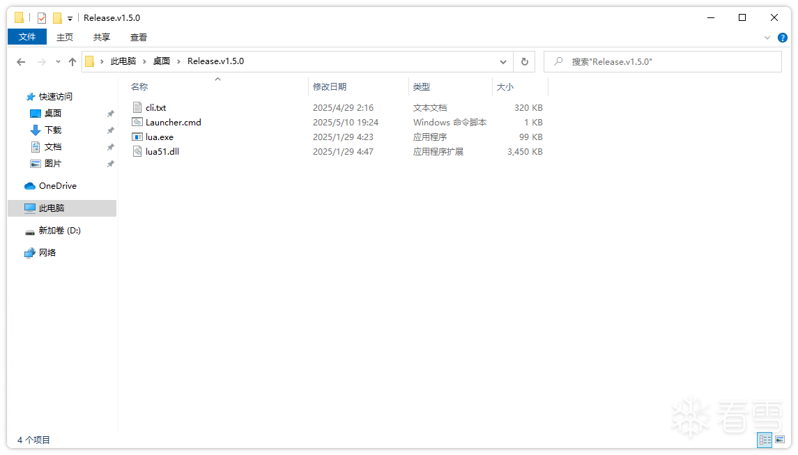 Launcher.cmd:批处理调用lua.exe并传入脚本(通常是cli.txt)。
