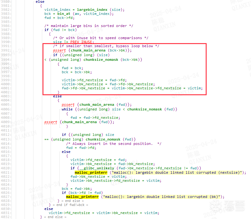 (2) 159~169: 将large_chunk,释放到largebin[2],将unsorted_chunk,释放到unsorted_bin;