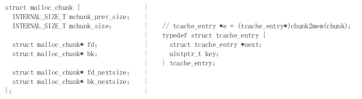 (1) tcache中链接的是tcache_entry对象,根据&chunk->fd位置强转得到,所以entry->next与chunk->fd位置对应。