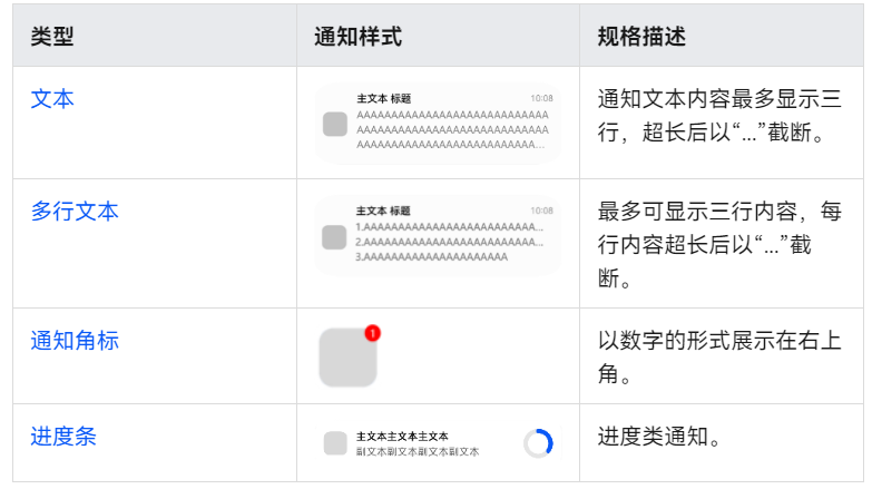 用户在使用应用时,经常想要了解应用程序在执行的操作,如下载完成、新邮件到达、发布即时的客服支付通知等,这些通知除了携带基本的文本图片信息外,最好还可以支持文件上传下载进度场景下的进度条通知,以及点击通知栏可以拉起目标应用的意图类型通知。开发者只有满足用户多种场景本地通知的需求,才能带来更好的用户体验。