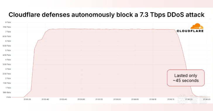 Cloudflare 于周四宣布,其自动拦截了有记录以来规模最大的分布式拒绝服务(DDoS)攻击,攻击峰值达到了 7.3 太比特每秒(Tbps)。此次攻击发生在 2025 年 5 月中旬,目标是一家未透露名称的托管服务提供商。