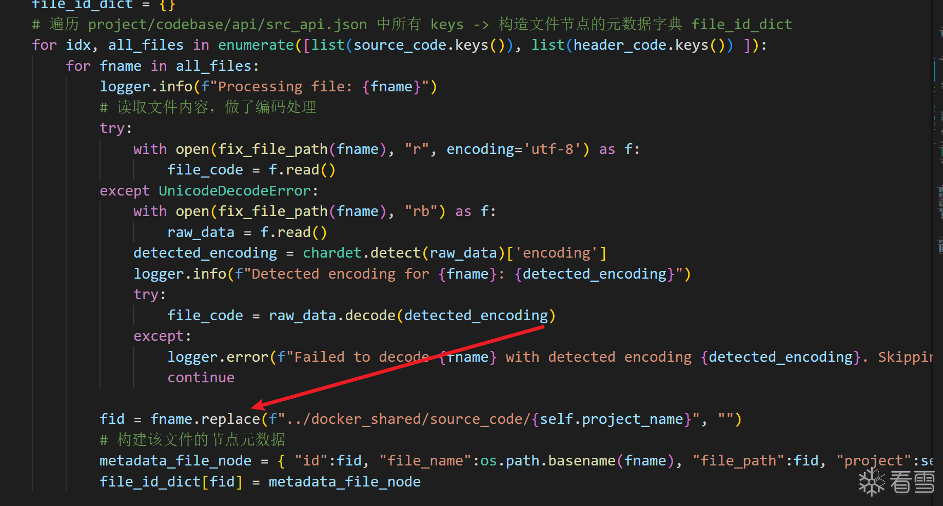 def _extract_API(self, src_dic): # 嵌套字典 result = collections.defaultdict(dict) for k in ['src', 'head']: logger.info(f"Processing {k} files") # 遍历所有 src/head 文件 for src in src_dic[k]: logger.info(f"Processing file: {src}") # 读取文件内容,这里做了兼容性处理,如果文件编码无法识别,则尝试使用 latin1 编码读取 try: with open(src, 'r', encoding='utf-8') as file: code = file.read() except UnicodeDecodeError: with open(src, 'rb') as file: raw = file.read() detected = chardet.detect(raw) encoding = detected['encoding'] try: code = raw.decode(encoding) except: logger.error(f"Failed to decode {src} with detected encoding {encoding}. Skipping this file.") continue try: ''' fn_def_list: 函数定义列表 fn_declaraion: 函数声明列表 class_node_list: 类定义 struct_node_list: 结构体定义 include_list: 包含的头文件 global_variables: 全局变量 enumerate_node_list: 枚举类型 ''' # 提取c/cpp中的相应结构, # is_return_node: 是否返回抽象语法树(AST)节点对象(True 返回 AST 节点,False 返回可序列化信息,如字符串 + 位置) fn_def_list, fn_declaraion, class_node_list, struct_node_list, include_list, global_variables, enumerate_node_list = CppParser.split_code(code, is_return_node=False) result[k][src] = { 'fn_def_list': fn_def_list, 'fn_declaraion': fn_declaraion, 'class_node_list': class_node_list, 'struct_node_list': struct_node_list, 'include_list': include_list, "global_variables": global_variables, "enumerate_node_list": enumerate_node_list } logger.info(f"Successfully processed {src}") logger.info(f"Found {len(fn_def_list)} function definitions, {len(fn_declaraion)} function declarations, {len(class_node_list)} classes, {len(struct_node_list)} structs") debug_output_path = f'{src}.debug.json' with open(debug_output_path, 'w') as f: json.dump(result[k][src], f, indent=2) logger.info(f"Debug output written to {debug_output_path}") except Exception as e: logger.error(f"Error processing {src}: {str(e)}") continue logger.info(f"Finished processing all files. Found data for {len(result['src'])} source files and {len(result['head'])} header files.") return result4.extract_src_test_api_call_graph()