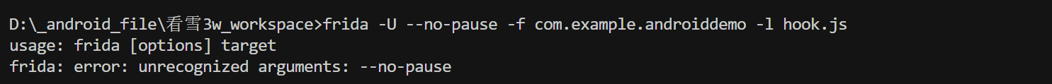 各位佬,我在学3w课程的时候发现没有no pause方式 ,无法按教程 frida -U --no-pause -f com.example.androiddemo -l hook.js 进行hook